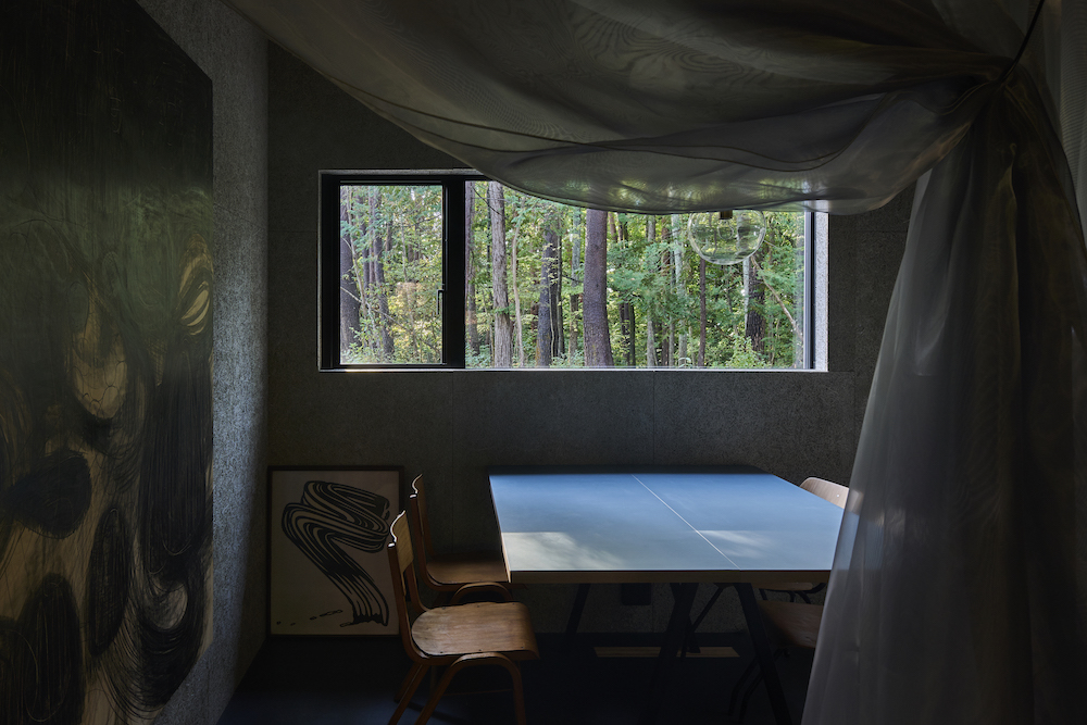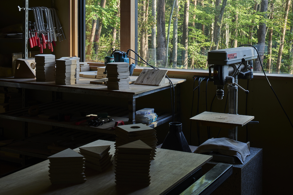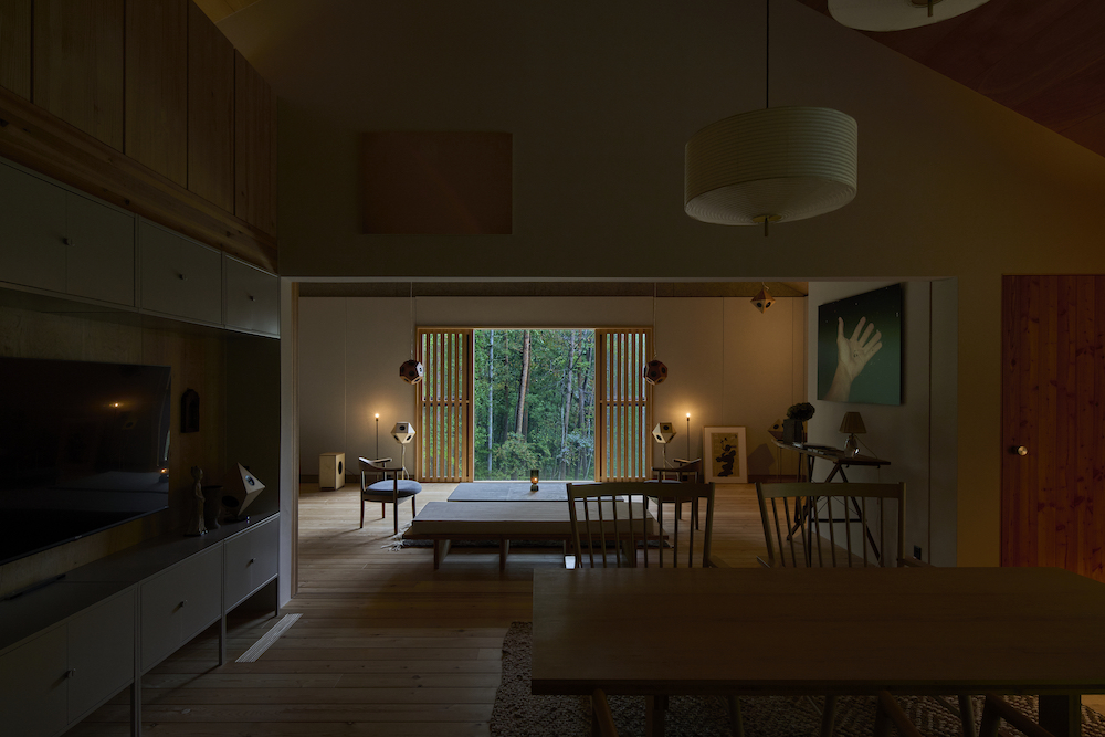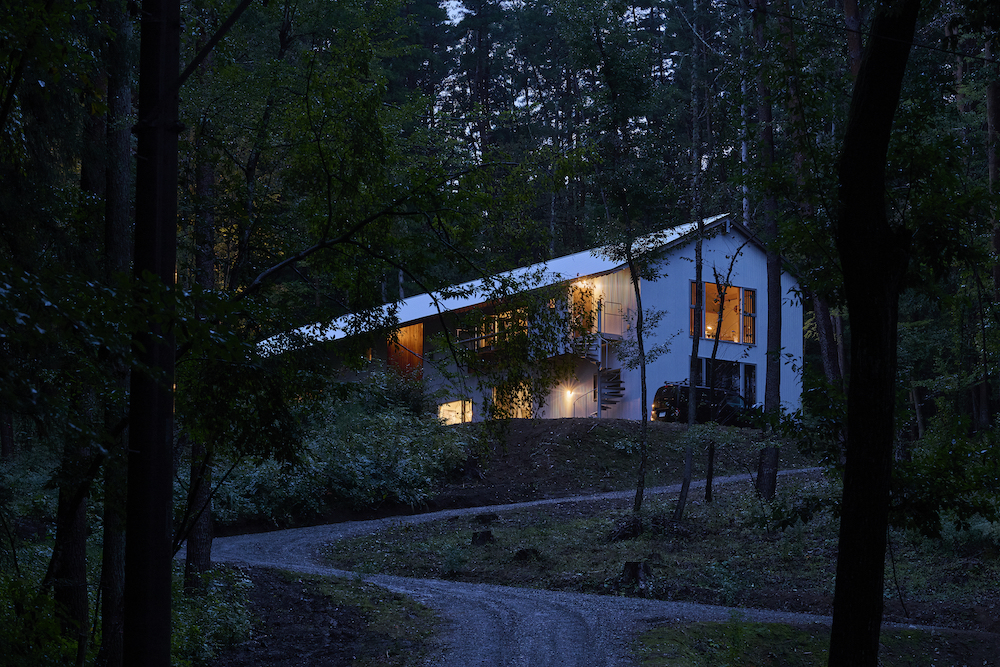 建築全体のプログラムは上記に加え、住居を併設する職住一体の思想が彼等の生き様そのものとなる。スピーカー製作という内向きのベクトルと音を体験するという外向きのベクトル。そして暮らし営むという人間の根源的な行為。彼等の感性と知性がこの森に結集し、曇りなく、全く彼等と一致した建築が立ち上がった。